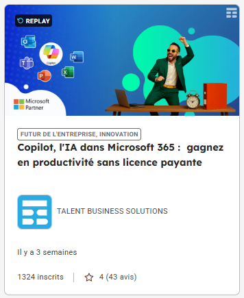 Pour en savoir plus voir le replay de notre webinaire « Copilot, l’IA dans Microsoft 365 : gagnez en productivité sans licence payante »